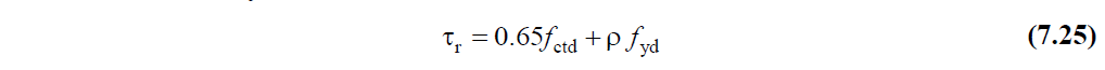τr = 0.65fctd + ρfyd = 0.65*118.97 + 0.00962*37242.076 = 435.72 tf/m2 olarak bulunmuştur.