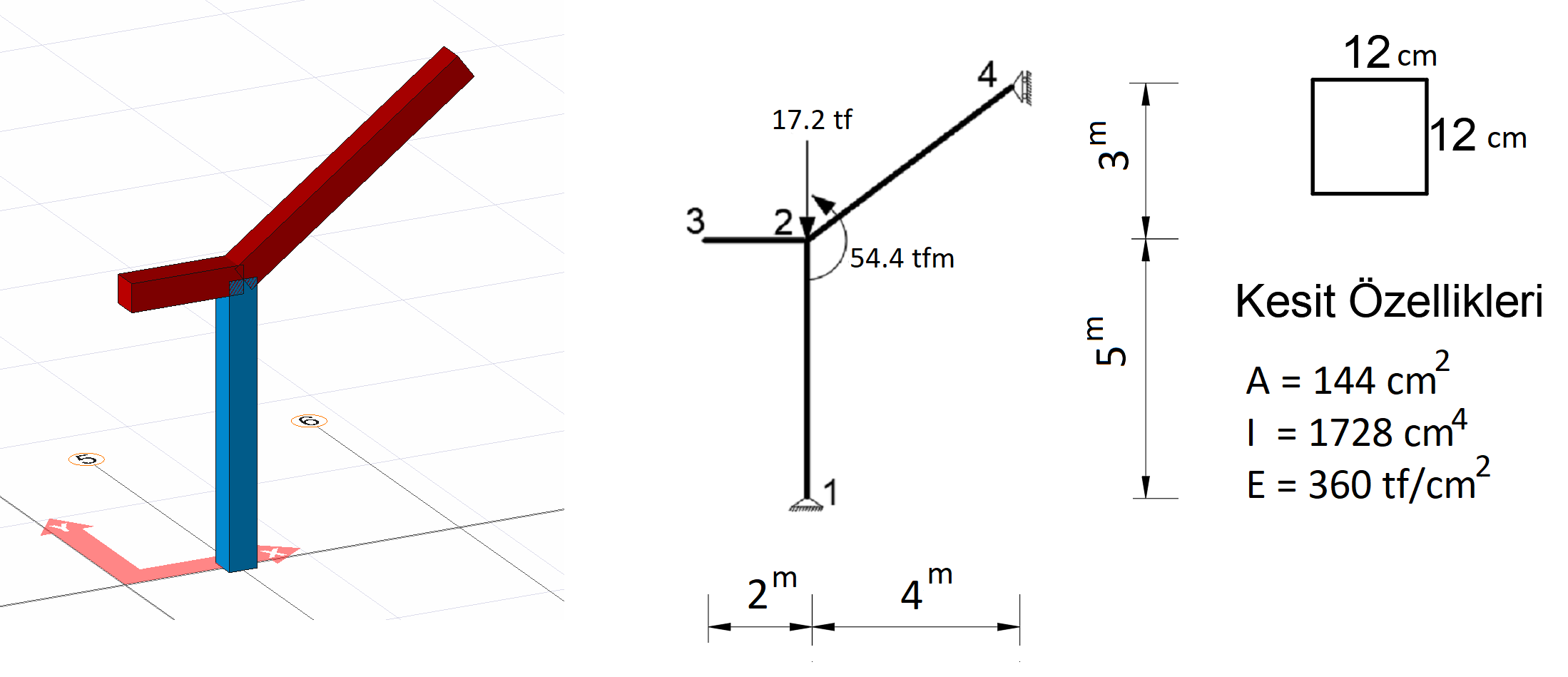 Yöntem gereği; integral 1-2 ve 2-4 düğüm noktaları arasındaki çubuklar için ayrı ayrı gözönüne alınmalıdır.