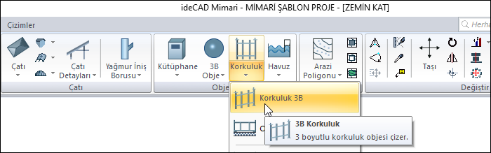 Farenin sağ tuşuna tıklayarak korkuluğun tamamlanması ![]() ![]() |