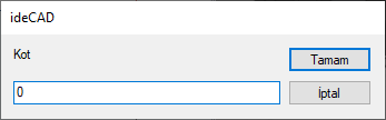 Tıklanan noktanın Kot değerini verebileceğiniz bir diyalog açılacaktır.