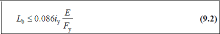Denklem 9.2' de verilen koşula uyacak şekilde yanal destek elemanları ile yanal burulmalı burkulmaya karşı desteklenmelidir.