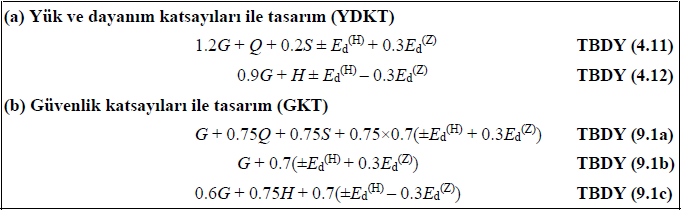 Çelik yapı elemanları, ÇYTHYE Bölüm 5.3’te verilen yük birleşimleri ve TBDY 2018 9.2.5’te verilen deprem içeren yükleme kombinasyonları esas alınarak boyutlandırılır.