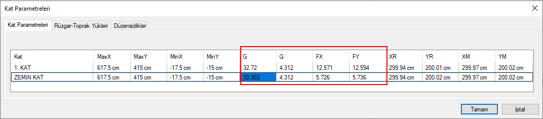 Yapı Ağırlığı Hesabı ve deprem kuvvetleri kat parametreleri diyaloğundan okunacaktır.