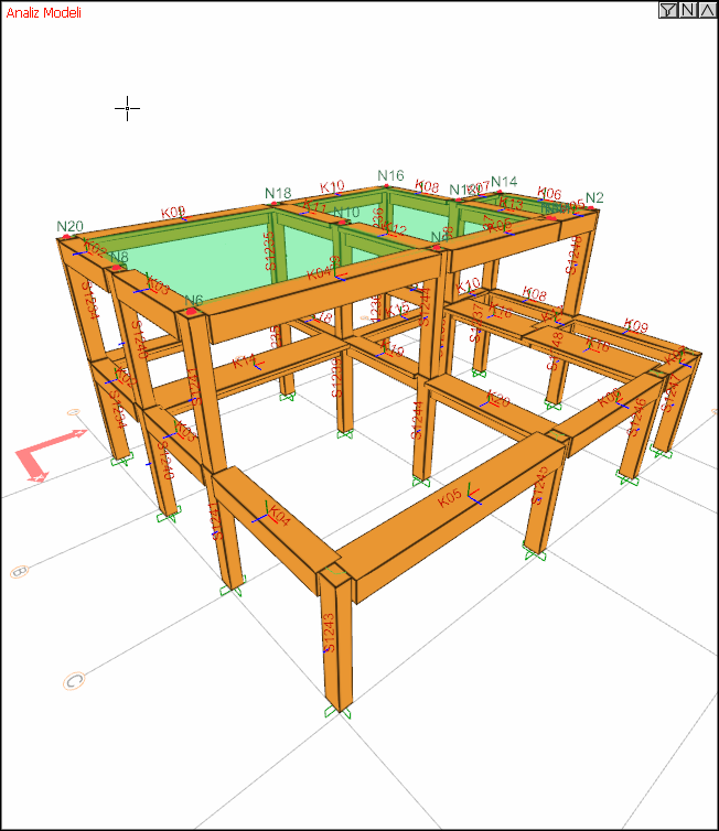 Yapının analiz modelinde gösterilecek düğüm noktası, eleman isimleri, lokal akslar gibi detaylar belirlenir. Detay seçimi Görselleştirme diyaloğu Analiz Modeli sekmesinden yapılır.