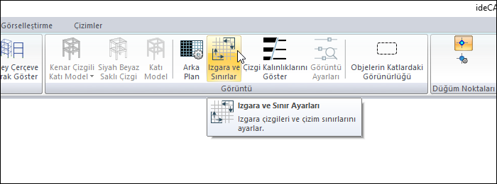 Yardımcı ızgara çizgilerine ayrıca Genel Ayarlar Genel Ayarlar sekmesinden de ulaşabilirsiniz.