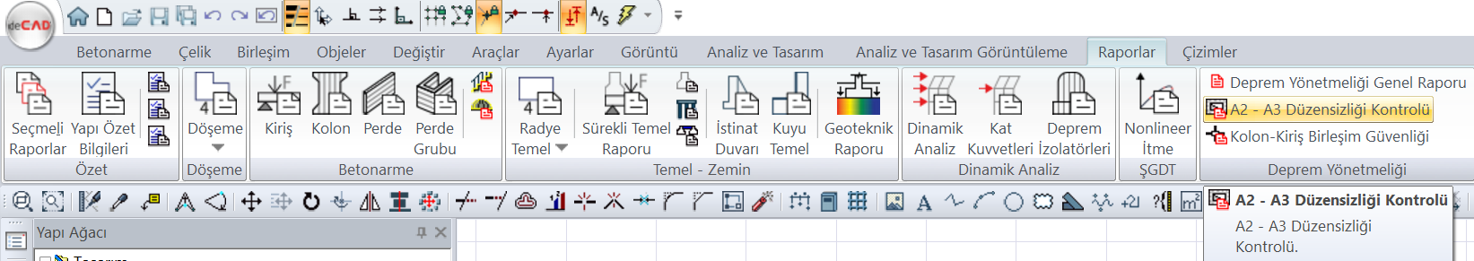 Raporlar sekmesi Deprem Yönetmeliği başlığı altından ulaşabilirsiniz.