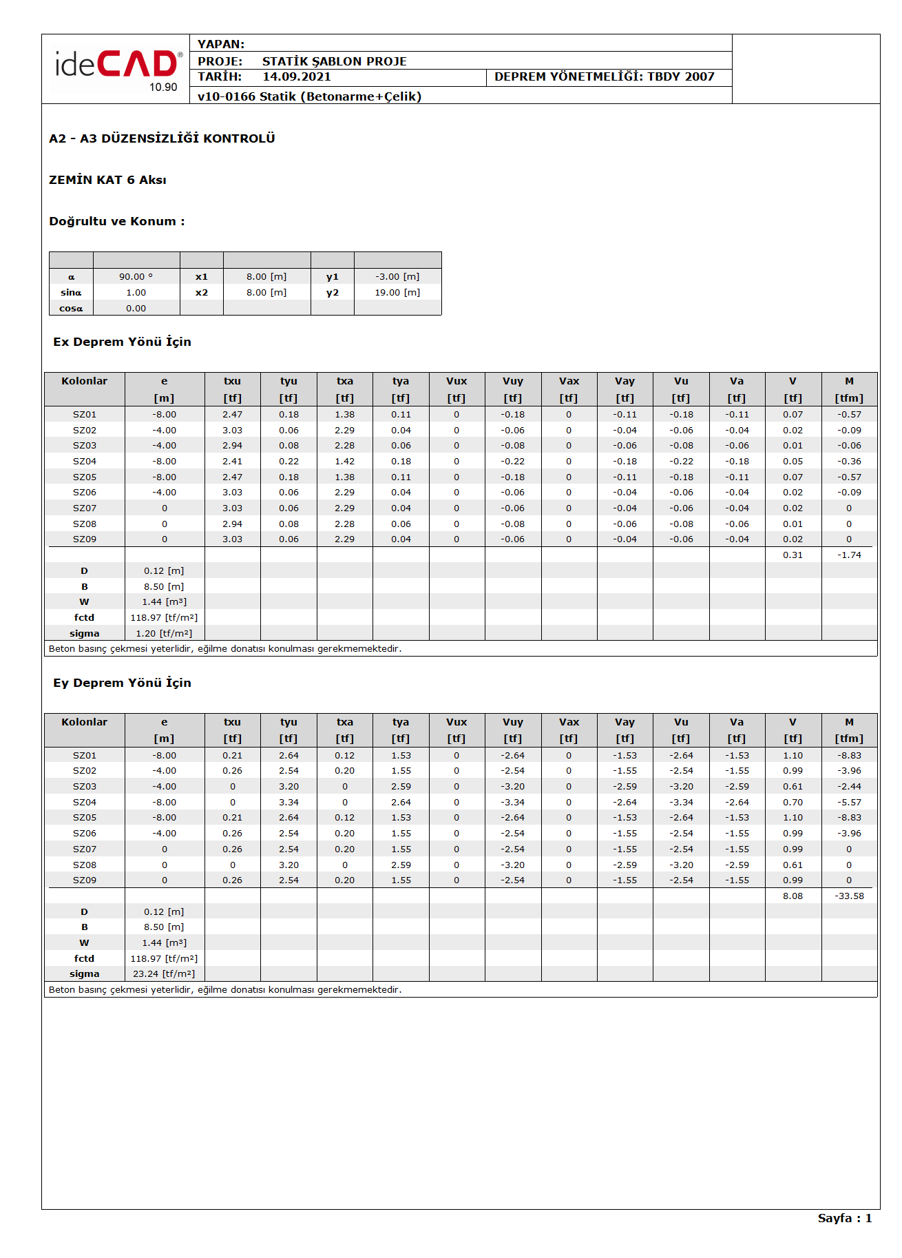 Örnek A2-A3 Düzensizliği Kontrolü Rapor sayfası ![]() |