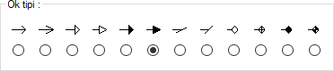 Ok tipi ![]() Açı ölçülendirme oku için verilen 12 gösterim tipinden biri seçilir. |