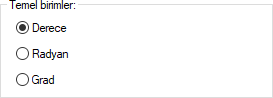 Temel birimler ![]() Seçimlerden biri farenin sol tuşu işe tıklanarak etkin hale getirilir. Derece: İşaretlenirse, bilgi yazısının birimi derece olur. |