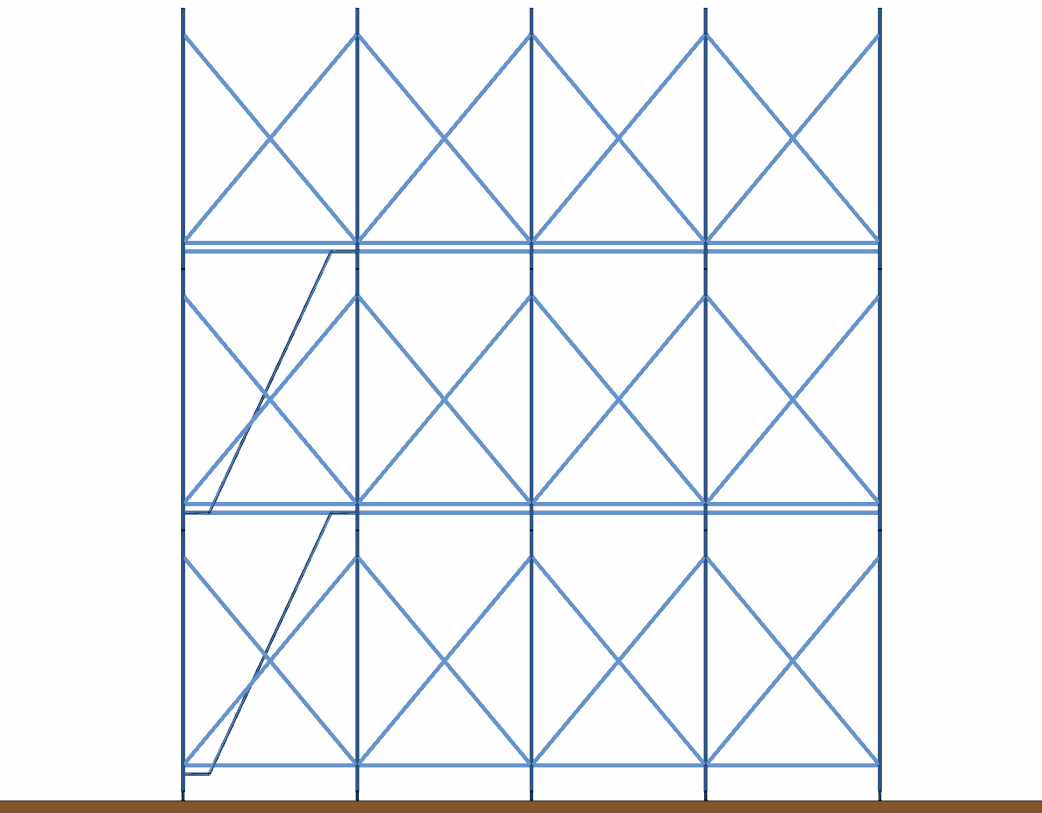 Açıklık yüksekliğini değiştirmeden önce iskele görünümü |