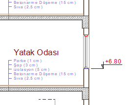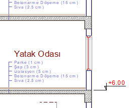 Kesit çiziminizde döşemenize tıklayın. Kotunuz otomatik oluşacaktır..