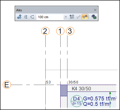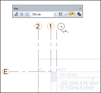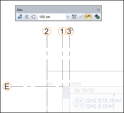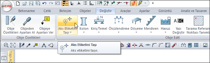 Toolbardan Aks ikonunu tıkladıktan sonra yardımcı toolbardan Aks Etiketini Taşı ikonunu ve aks seçimi ![]() |