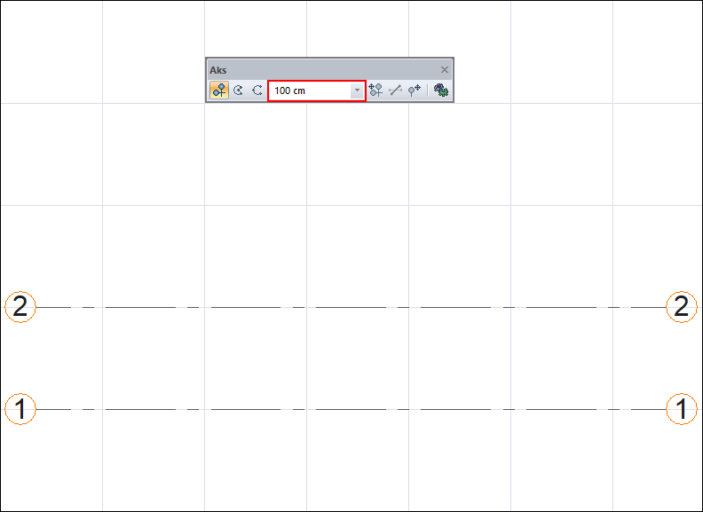 İkinci aksınızı ilk aksınızdan 100 cm uzakta oluşturmak için, klavyeyi kullanarak 100 yazın. Aynı anda toolbarda yer alan mesafe kutucuğunda yazdığınız değeri takip edebilirsiniz. Mesafe değerini yazdıktan sonra enter tuşuna bastığınız da ikinci aksınız ilk aksınızdan 100 cm yukarıda oluşacaktır.