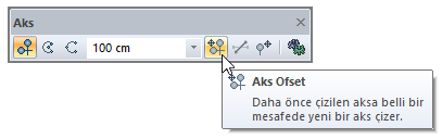 Bir akstan belli bir mesafede yeni aks/akslar üretmek için Aks Ofset komutu kullanılır. Aks ofset komutu tıklandığında, son çizilen ya da seçili akstan, ofset kutucuğuna girilen değer kadar uzakta yeni bir aks çizilir.
