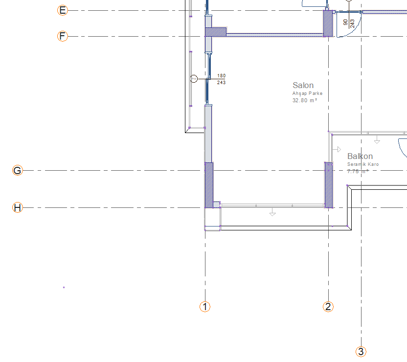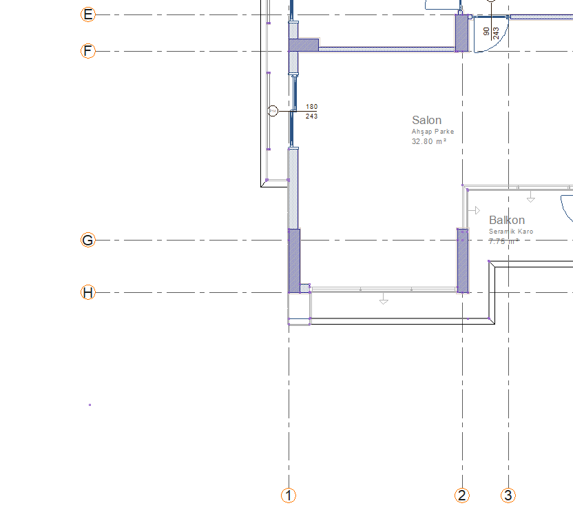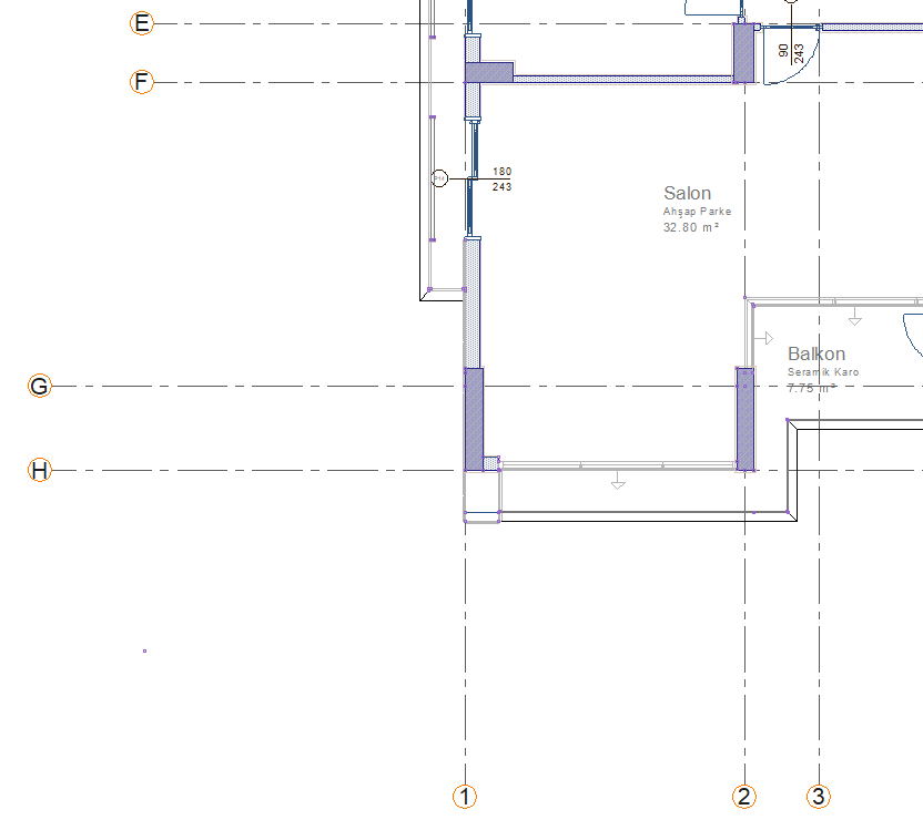 Aks sınırına uzat özelliği aktif hale getirilerek, aks uzunlukları Kontur Çizgileri ve Aks Sınırı düzenine göre otomatik çizilir. Aks uçları, kontur çizgisine göre belirlenen aks sınırına kadar uzatılır.