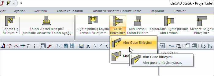 Alın Guse Birleşimi komutu ile kolon-kiriş birleşimi tanımlanır.