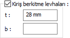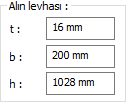 Kiriş berkitme levhaları ![]() Kiriş berkitme levhaları değerler girilerek belirlenir. Girilecek değerler şematik çizimde gösterilmektedir. |