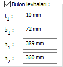 Bulon levhaları ![]() Bulon levhaları değerler girilerek belirlenir. Girilecek değerler şematik çizimde gösterilmektedir. |