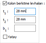 Kolon berkitme levhaları ![]() Kolon berkitme levhaları değerler girilerek belirlenir. Girilecek değerler şematik çizimde gösterilmektedir. |