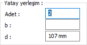 Yatay yerleşim ![]() Bulonların yatay yerleşim uzaklık değeri girilir. Girilecek değerler şematik çizimde gösterilmektedir. |