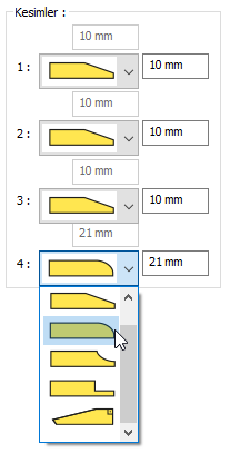Kesimler ![]() Levhaların sahada kolay montajı için şev kullanılmasına, şev tipine ve geometrik özellikleri değer girilerek belirlenir. |