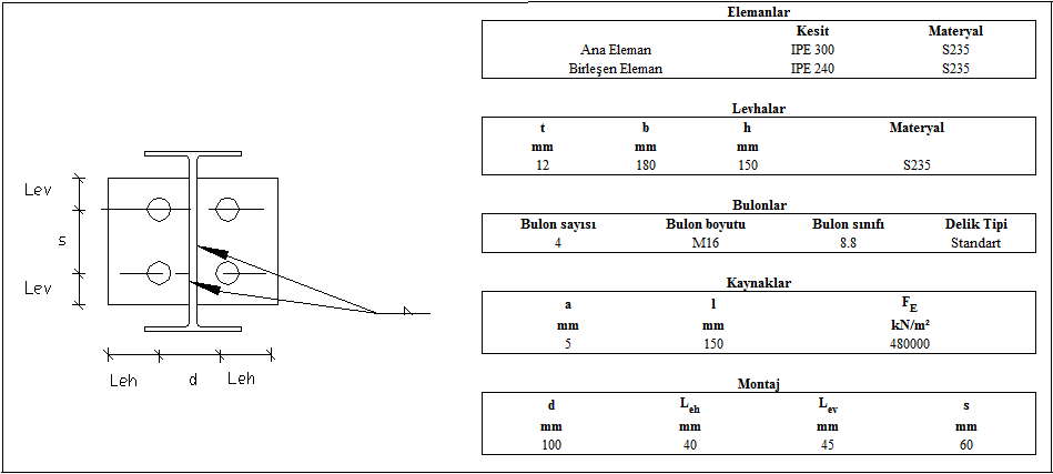 Lev | 40 mm | Leh ≥ 2d=2*16=32 mm uygulama için uygunluk kontrolü | √ |