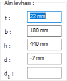 Alın levhası ![]() Alın levhası değerler girilerek belirlenir. Girilecek değerler şematik çizimde gösterilmektedir. |