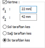 Kertme ![]() Seçenek işaretlenirse girilen değerlere göre kertme yapılır. Girilecek değerler şematik çizimde gösterilmektedir. |