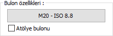 Bulon özellikleri ![]() Bulon özellikleri butonu tıklanarak Delik ve Bulon Paramatreleri diyaloğu açılır. Bulon özellikleri bu diyalogdan ayarlanır. |