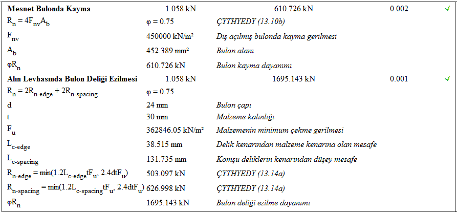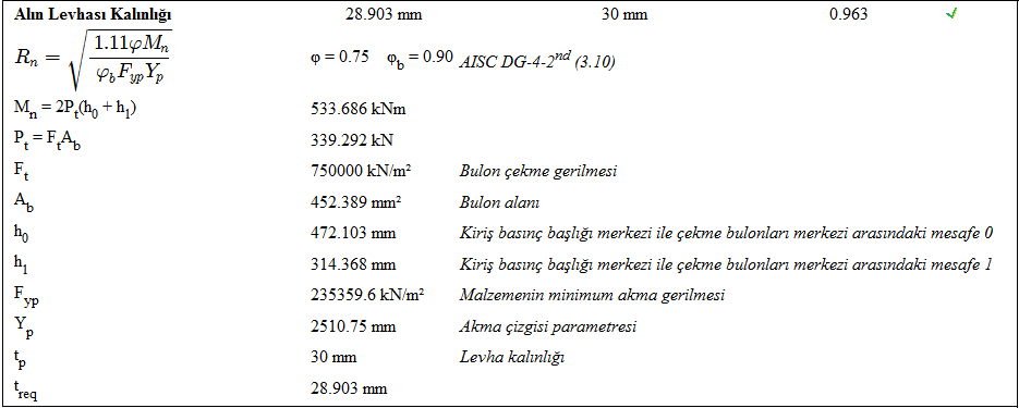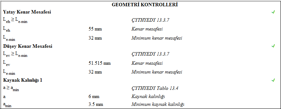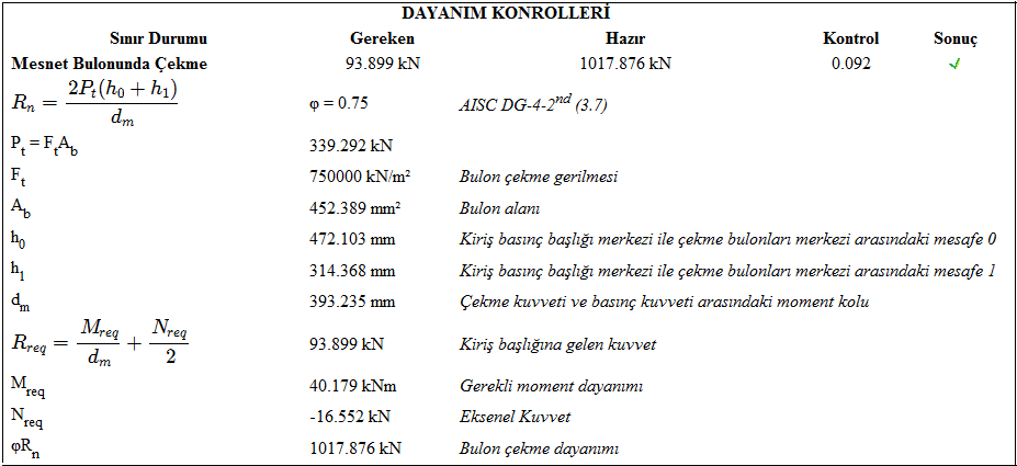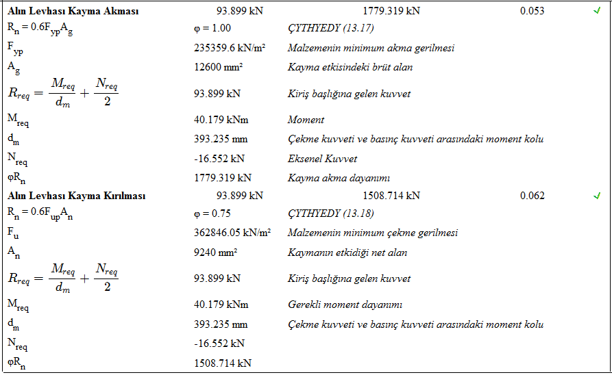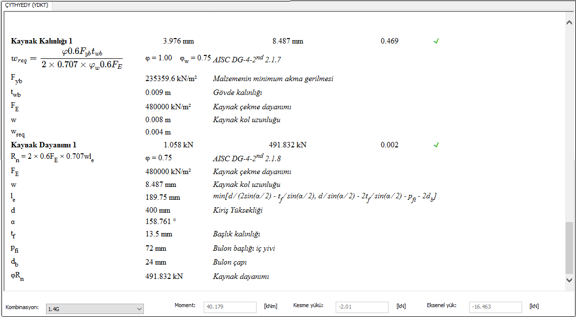 Alın levhalı kiriş eki birleşim tasarımı Çelik Yapıların Tasarım, Hesap ve Yapım Esasları (ÇYTHYEDY), AISC 360-16, yönetmeliklerine göre otomatik yapılır ve birleşim raporu oluşturulur.