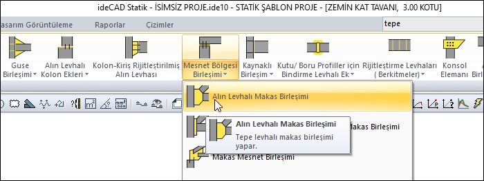 Çelik menüsünden Alın Levhalı Makas Birleşimi satırını tıklayın.