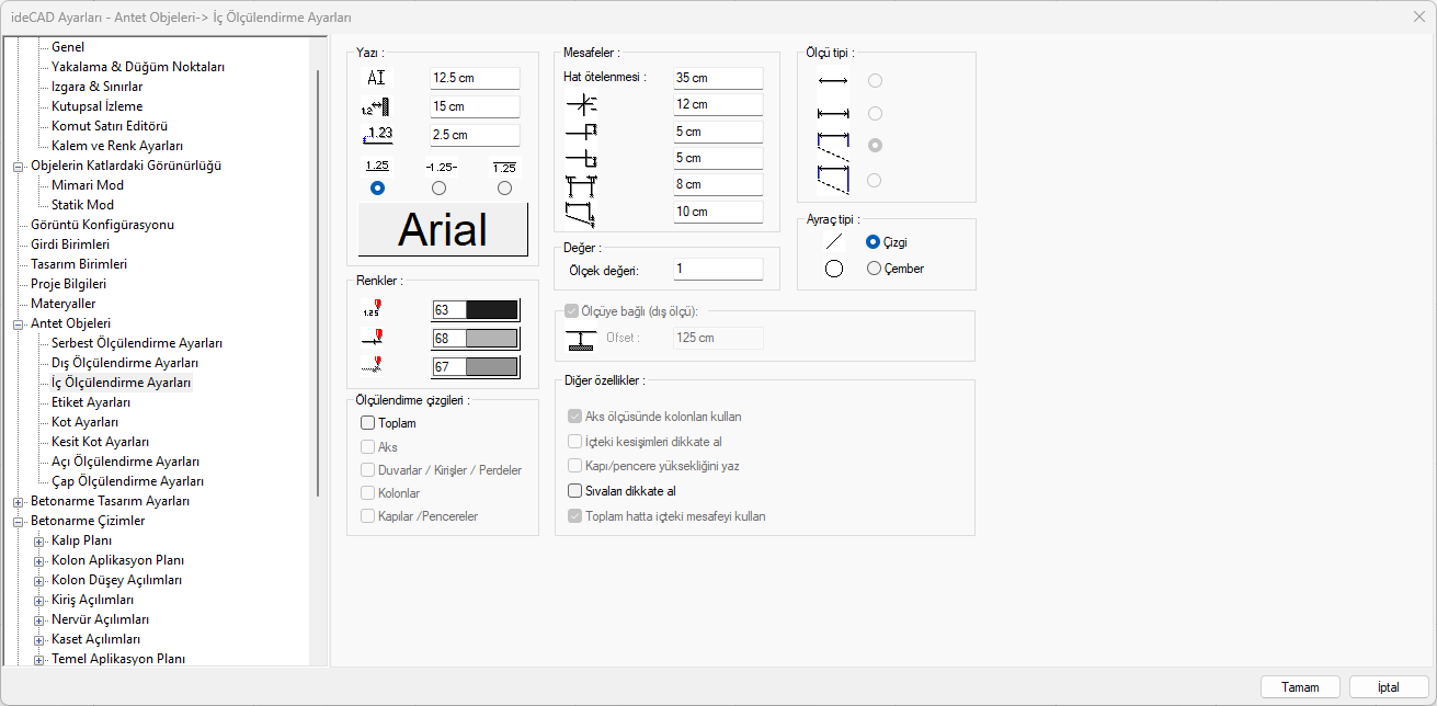 ![]() Kot ölçülendirme değeri yapı tabanına göre verilir. İşaretlenmezse değer, kat tabanına göre verilir. |