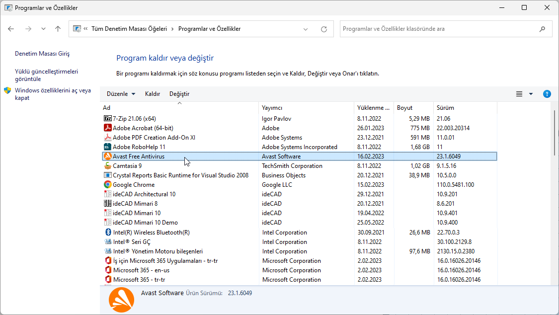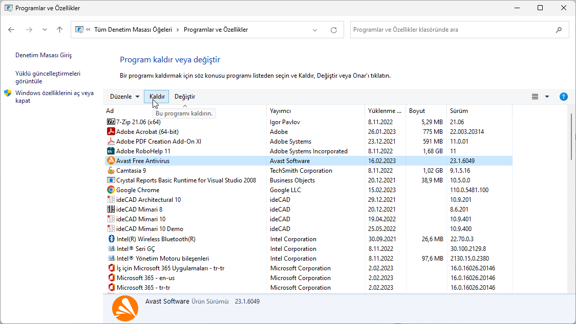 Antivirüs programlarının bilgisayardan kaldırılması.