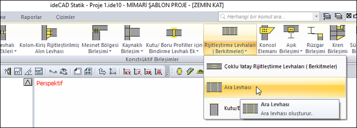 Ara Levhası komutu ile birleşik köşebentleri birbirine bağlayan levhalar tanımlanır. Çaprazlarda çift köşebent kullanıldığında, ara levhalar otomatik yerleştirilir. Ara levhalar çift tıklandığında birleşim özellikleri açılır.
