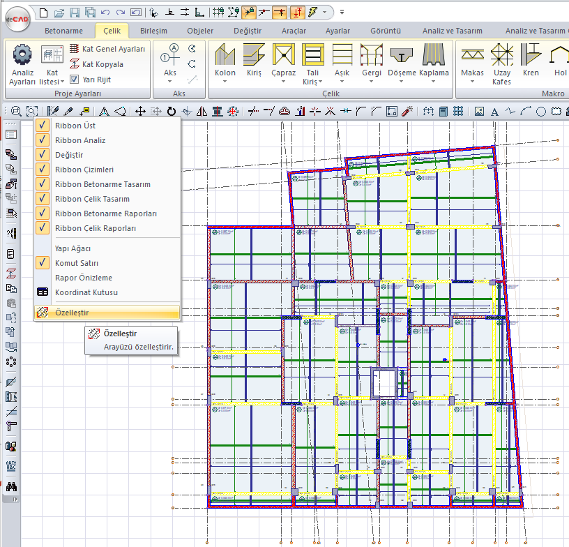 Çok kullanılan bir komut, görünen bir yerde, araç çubuğunda kullanılmak isteniyorsa, “Özelleştir” ile araç çubuklarında istenen yere sürüklenip bırakılır.