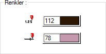 Renkler ![]() Kot yazısı ve çizgisinin renkleri ayarlanır. Ayrıca kutucuk Shift tuşu ile birlikte tıklanırsa, ilgili rengin kalem kalınlığı ayarlanabilir. |