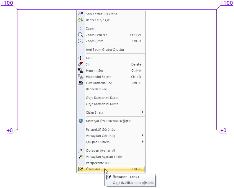 Derinlik vermek istediğiniz araziyi seçin farenin sağ tuşuna tıklayarak açılan menüden Özellikler satırına tıklayın.