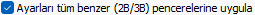 Ayarları tüm bencer (2B/3B) pencerelerine uygula ![]() Çalışılan çizim penceresi için yapılan ayarların o anda açık olan diğer pencereler için de geçerli olmasını sağlayacaktır. |