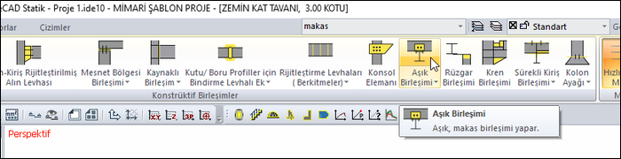 3 Boyutlu perspektif görüntüden sırasıyla önce kirişi veya makası sonra aşığı tıklayın.