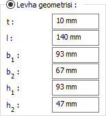 Levha geometrisi ![]() Seçenek işaretlenirse köşebent değerler girilerek belirlenir. Girilecek değerler şematik çizimde gösterilmektedir. |