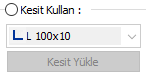 Kesit kullan ![]() Seçenek işaretlenerek hazır L profillerden biri köşebent olarak listeden seçilir. Kesit yükle butonu tıklanarak hazır kesit kütüphanesine ulaşarak Amerikan ve Avrupa hazır hadde kesitlerinin listesine ulaşılır ve listeden seçim yapılır. |