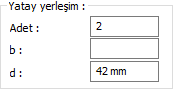 Yatay yerleşim ![]() Bulonların yatay yerleşim uzaklık değeri girilir. Girilecek değerler şematik çizimde gösterilmektedir. |