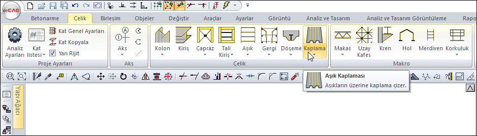 Ribbon menü Çelik sekmesi Çelik başlığı altından ulaşabilirsiniz.