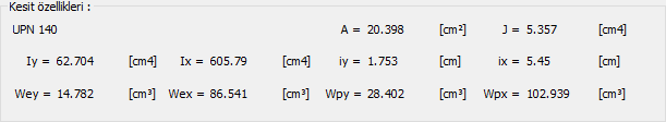 Kesit özellikleri ![]() Kesitin isminin ve geometrik özelliklerinin yer aldığı kısımdır. |