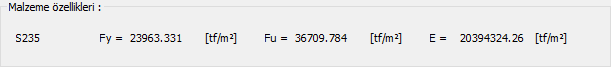 Malzeme özellikleri ![]() Kesitte kullanılan çelik malzemesine ait özellikler listelenir. |