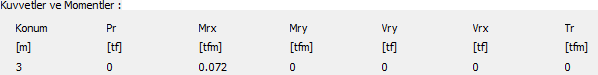 Kuvvetler ve momentler ![]() Elemanda oluşan, seçilen yük kombinasyonuna ait, iç kuvvetler bu kısımda gösterilir. |