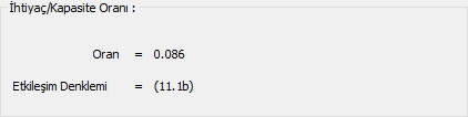 PMM Oranı ![]() İhtiyacın kesit kapasitesine oranıdır (PMM Oranı = İhtiyaç/Kapasite). |