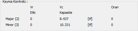 Maj-Ksm-Oran ![]() Kesitin majör yönündeki kesme kuvvetinin majör yöndeki kapasiteye oranıdır. |