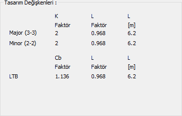Tasarım değişkenleri ![]() K Faktör: Hesaplarda kullanılan etkili uzunluk katsayısıdır. |