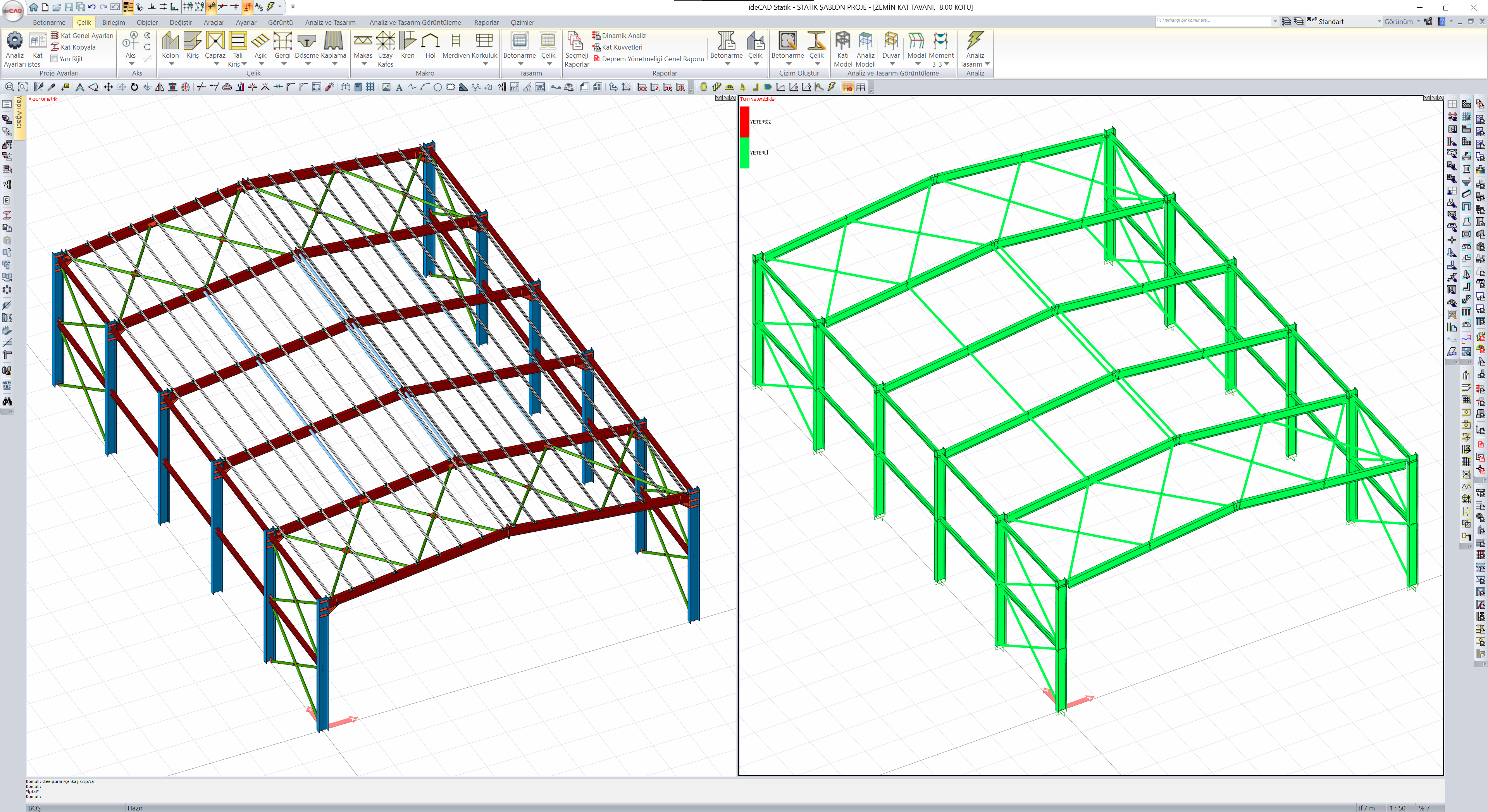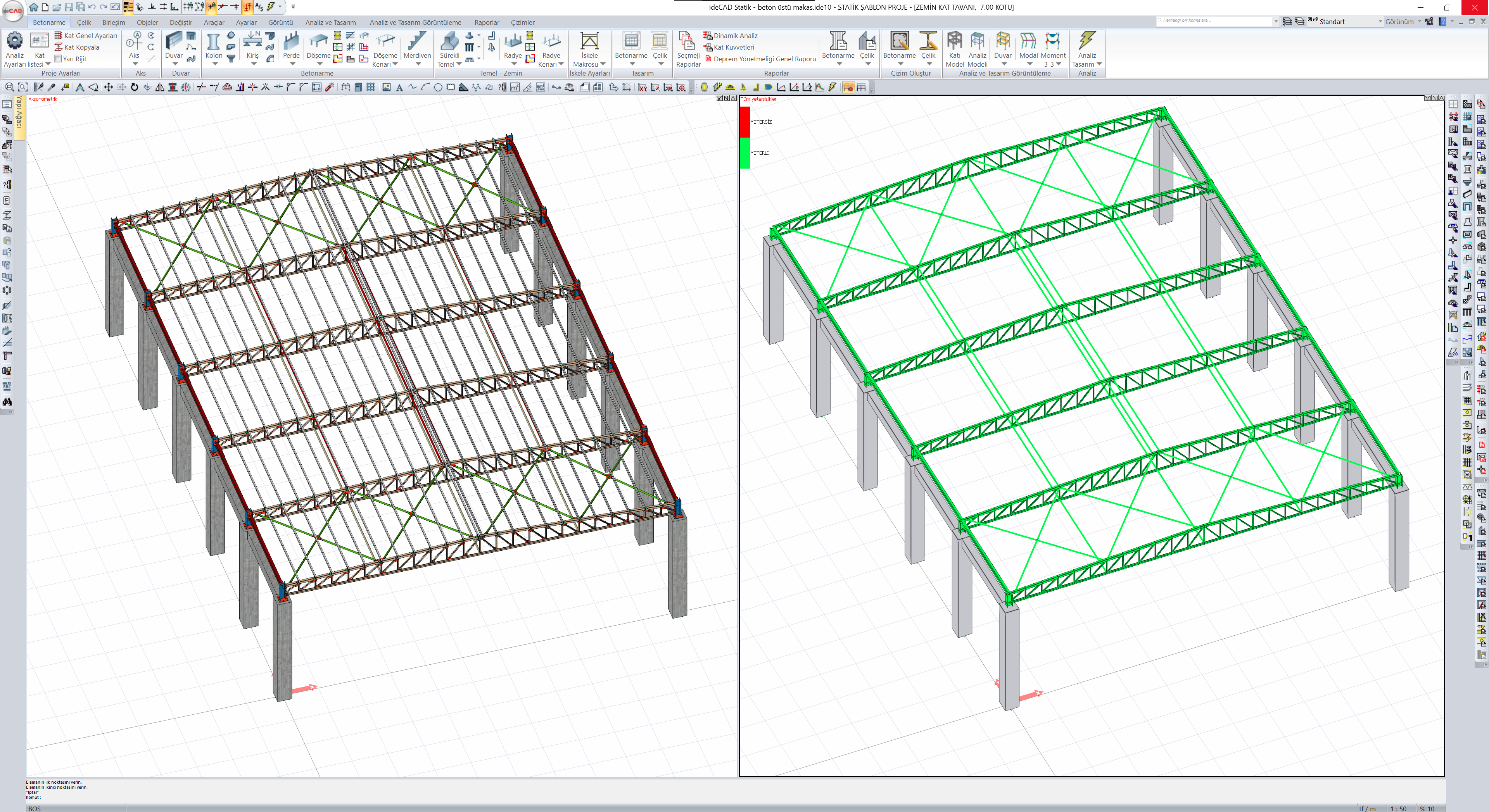 Komuta girildiğinde 3 boyutlu perspektif ekranda analiz modeline dahil olan aşıklar seçili hale gelecektir.